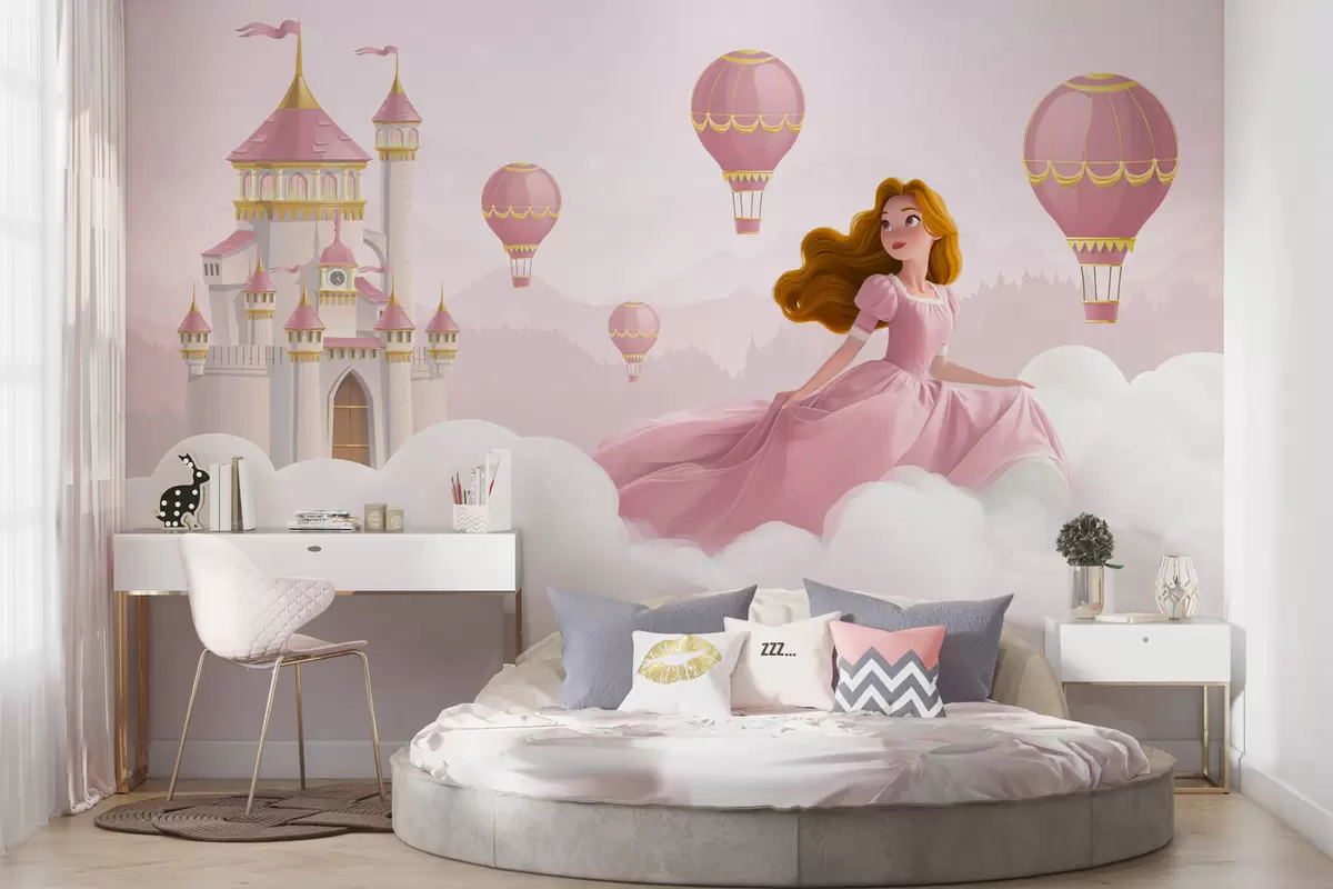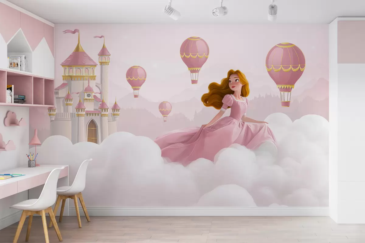 Τοιχογραφίες Πριγκίπισσα ανάμεσα στα σύννεφα στο φόντο του τοπίου με το κάστρο Nr. w04015v1