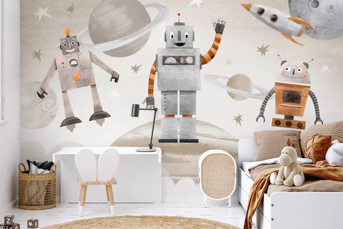 Τοιχογραφίες Ρομπότ στο διάστημα σε στυλ ακουαρέλας Nr. w04016v1