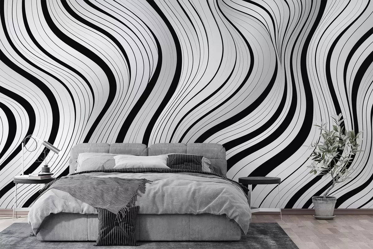 Τοιχογραφίες Αφηρημένα γκρίζα κύματα Nr. w04022