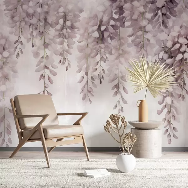 Τοιχογραφίες Μαλακή σκηνή υδατογραφίας σε κρεμώδη ροζ τόνους, με καταρράκτες γλιστρίδας που σχηματίζουν μια ονειρική λουλουδένια κουρτίνα Nr. w04034v2