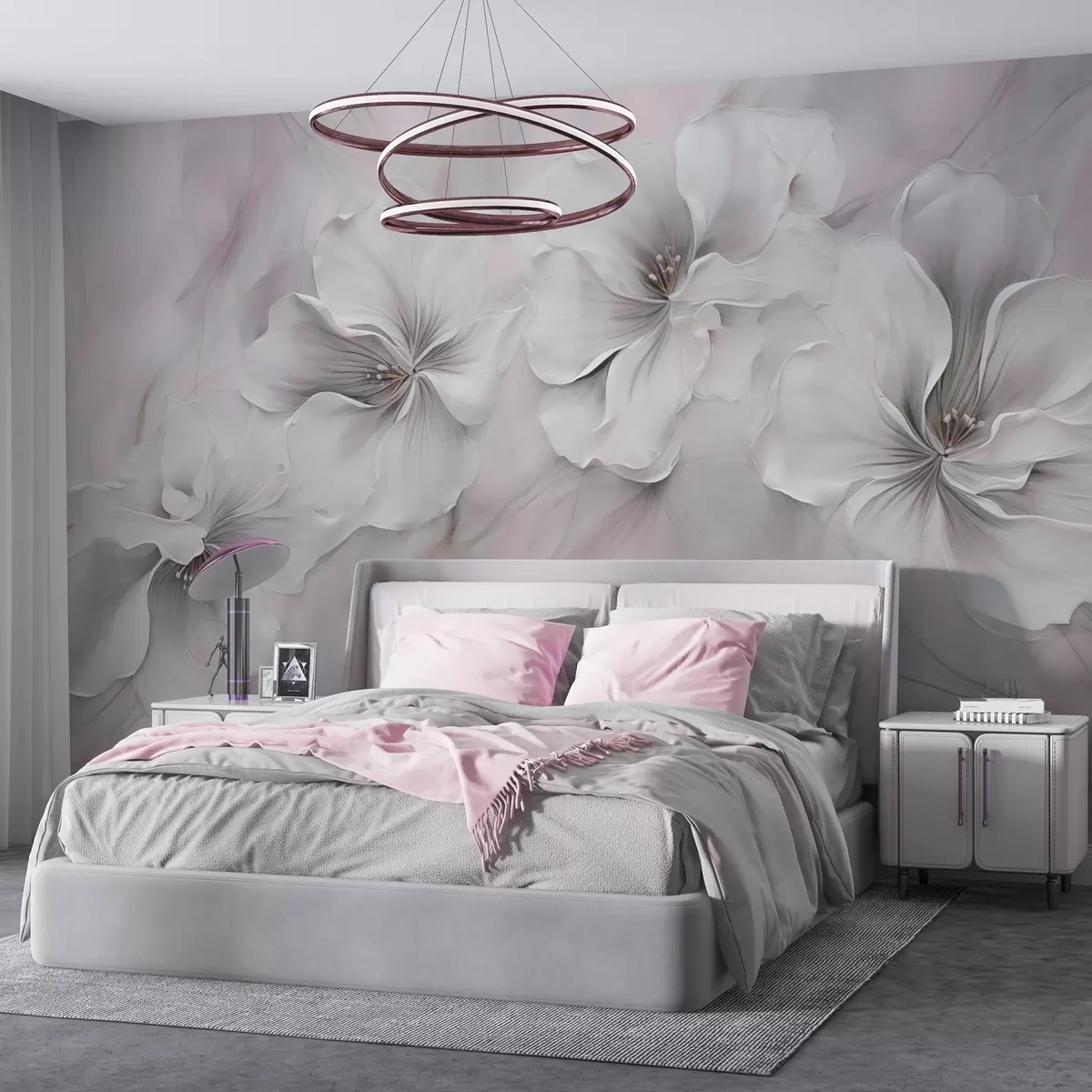 Τοιχογραφίες Ελαιογραφία λουλούδια σε ροζ φόντο Nr. w04047v1