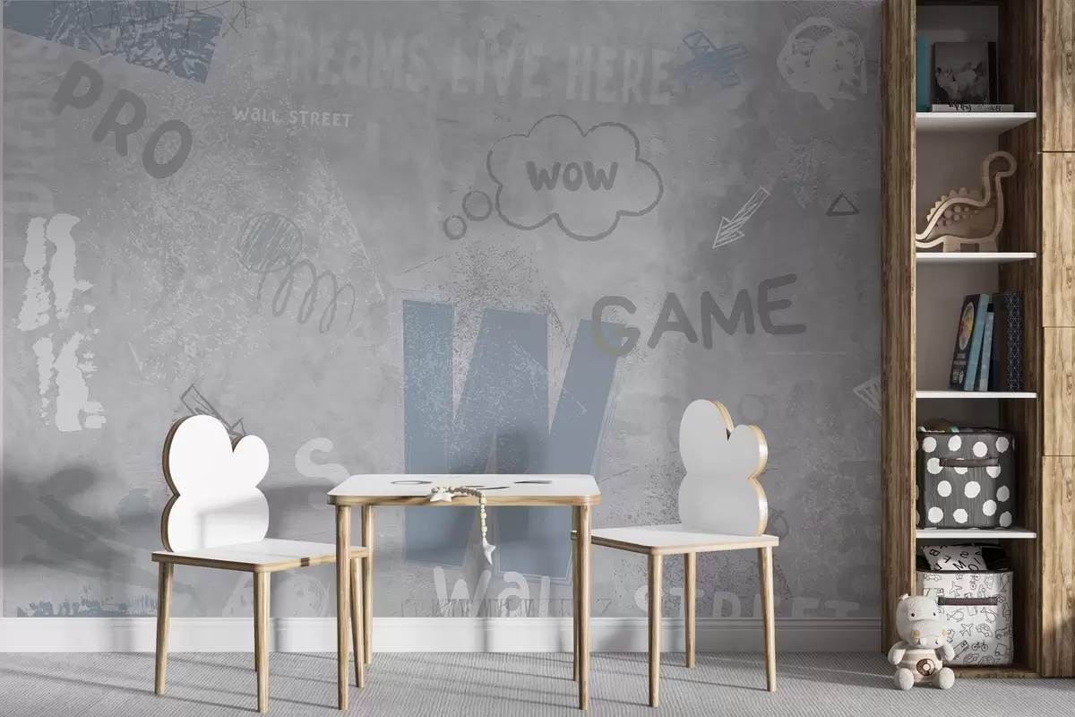 Τοιχογραφίες Σχεδιασμός σε στυλ street art με μπλε χρώμα επιγραφές στο φόντο του τσιμεντένιου τοίχου Nr. w04056v1