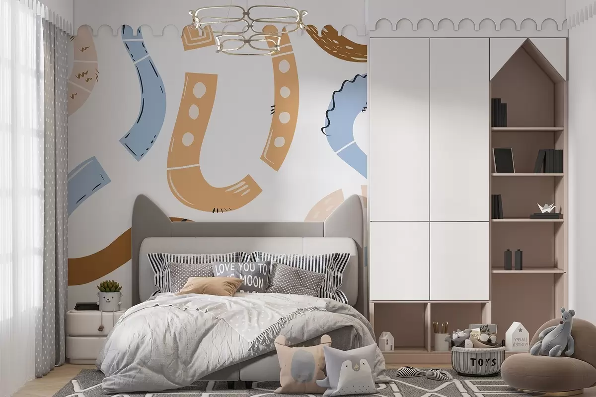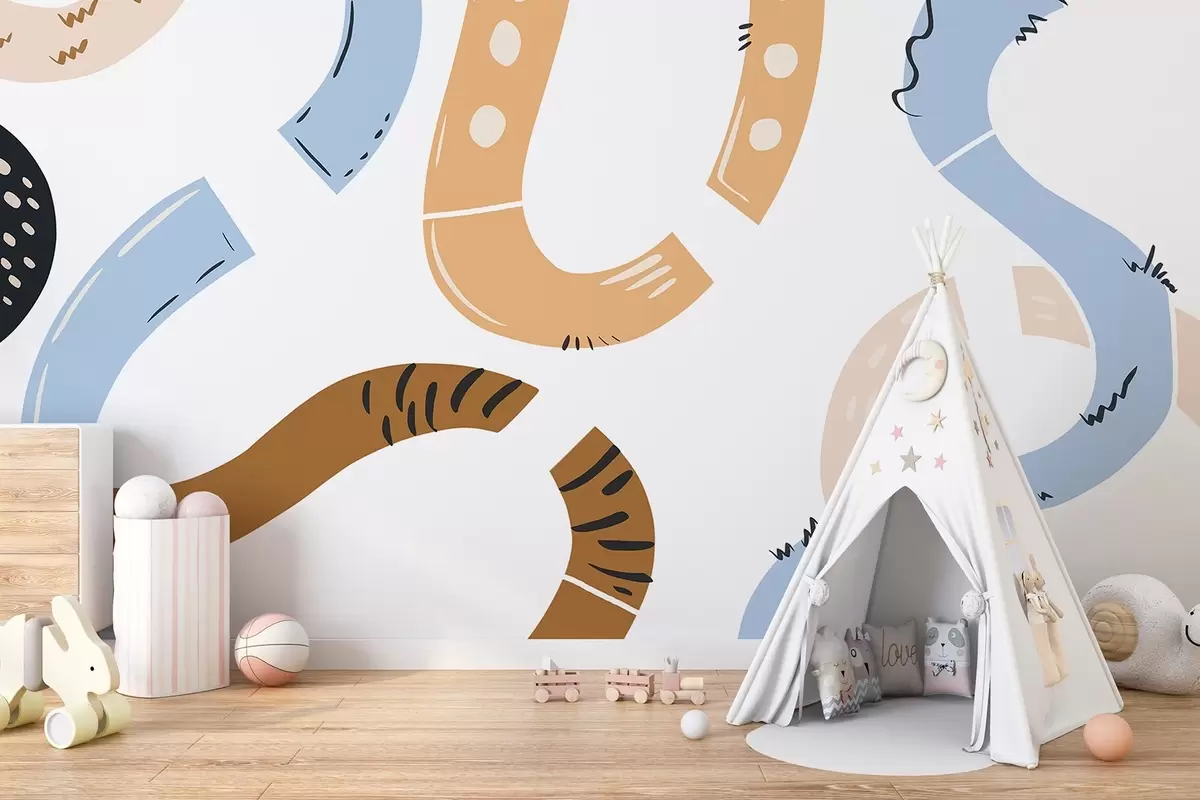 Τοιχογραφίες Αφηρημένα σχέδια, νεανικά, doodles, καφέ, μπλε, ροζ Nr. w04066