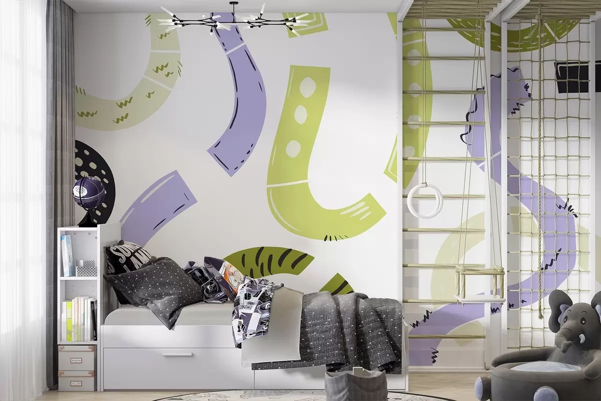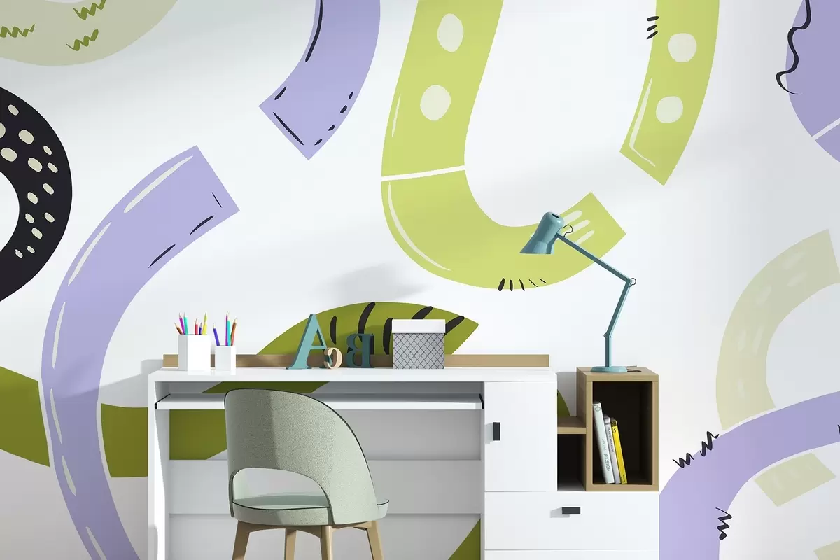Τοιχογραφίες Αφηρημένα σχέδια, νεανικό, doodles, πράσινο, μοβ Nr. w04066v1
