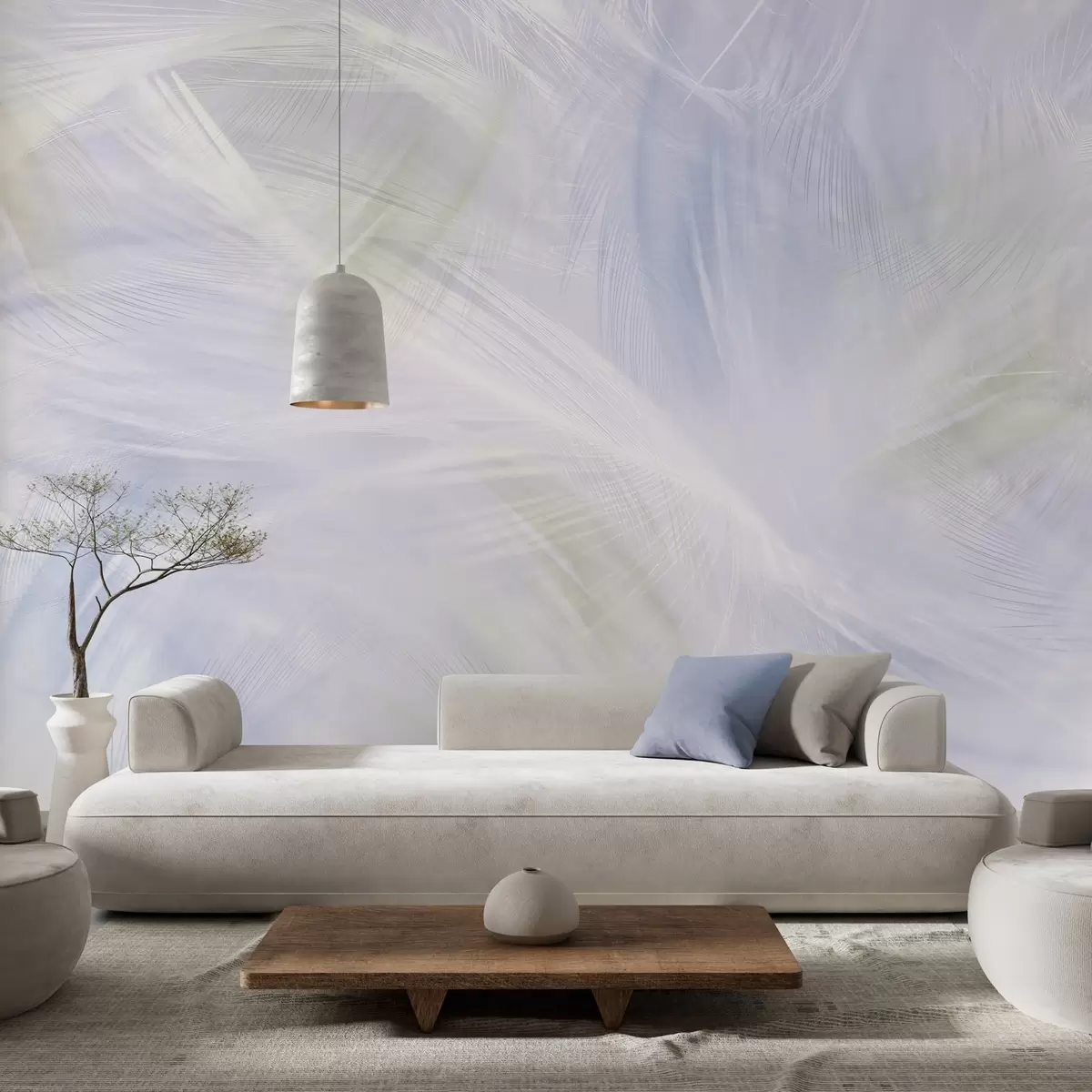 Τοιχογραφίες αέρινα φτερά σε αποχρώσεις του μπεζ και του μπλε Nr. w04071v1
