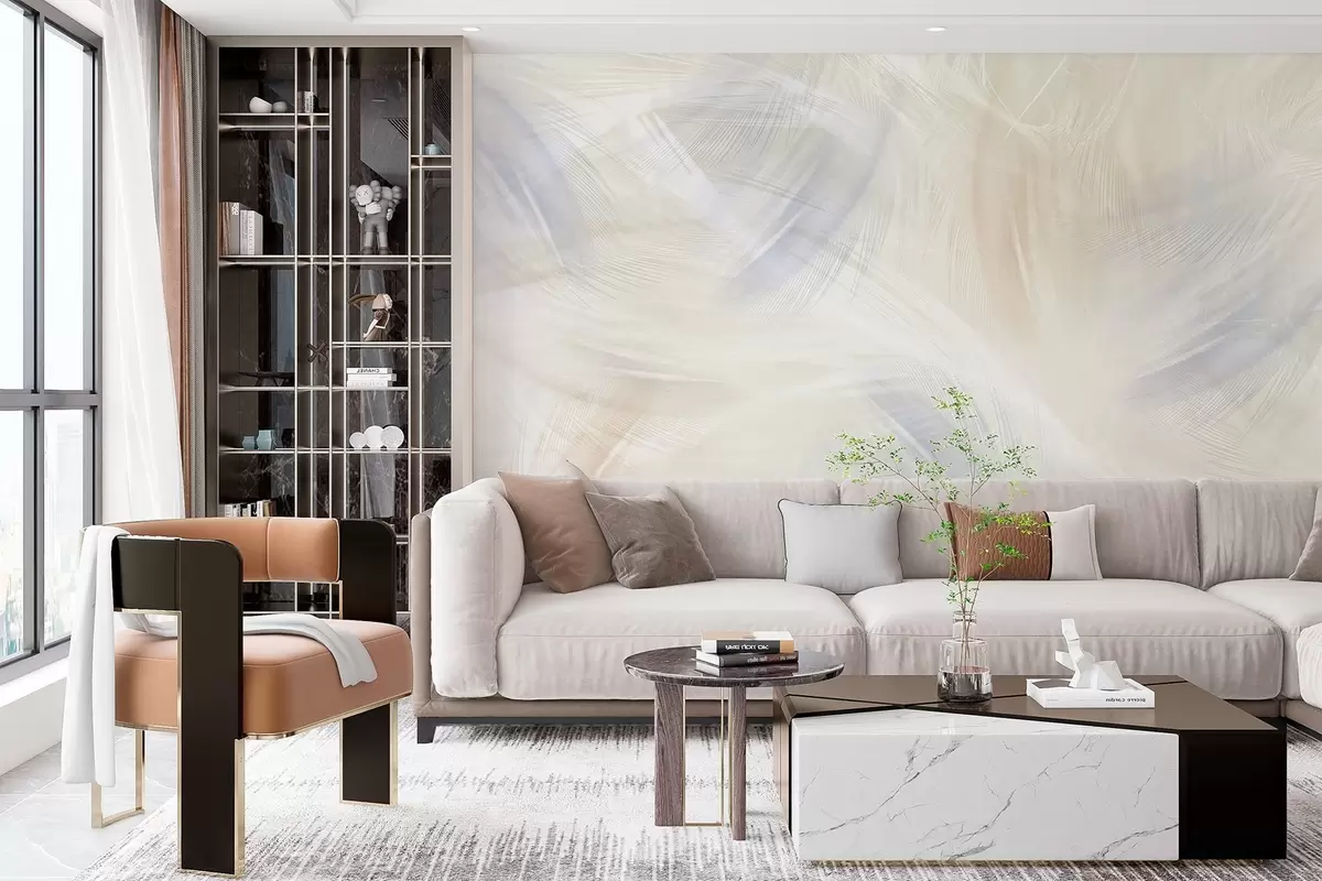 Τοιχογραφίες αέρινα φτερά σε αποχρώσεις του μπλε και του μπεζ Nr. w04071v2
