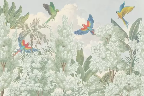 Τοιχογραφίες Παπαγάλοι στη ζούγκλα Nr. w04105
