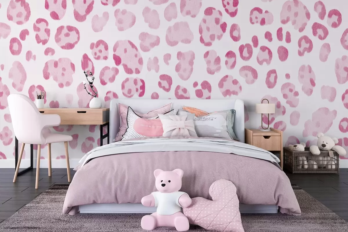Τοιχογραφίες Leopard print, μάλλινη υφή, ροζ χρώμα Nr. w04112v2
