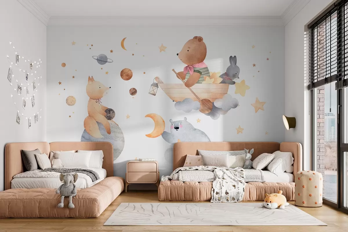 Τοιχογραφίες Παραμυθένια ζώα ανάμεσα σε σύννεφα και αστέρια Nr. w04123