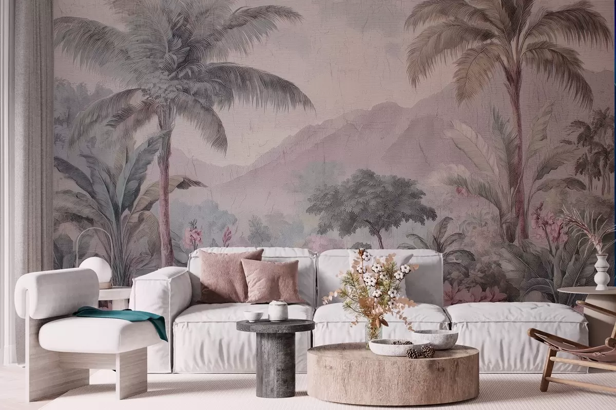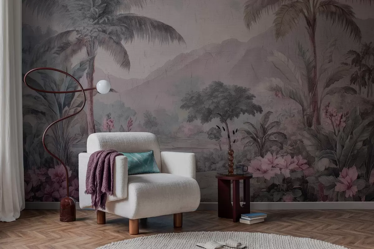Τοιχογραφίες τροπική ζούγκλα σε ρετρό στυλ Nr. w04139