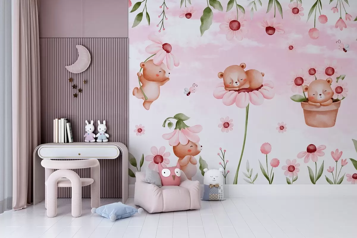 Τοιχογραφίες Αρκούδες με λουλούδια, παραμυθένια ζώα Nr. w04143