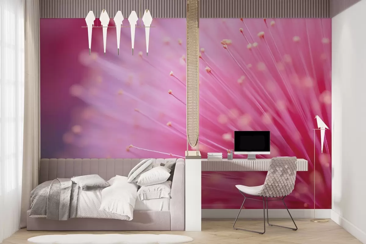 Τοιχογραφίες Ροζ στήμονες λουλουδιών σε μακροεντολή, λεπτή αφαίρεση Nr. w04154