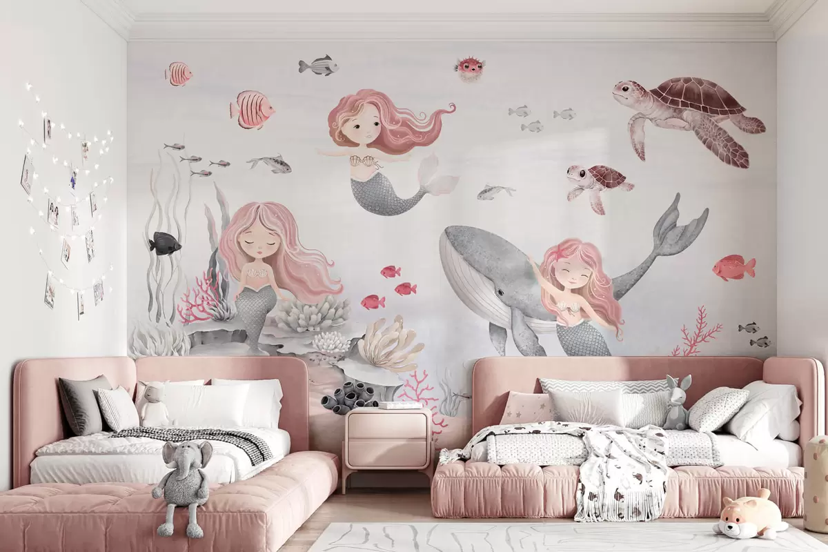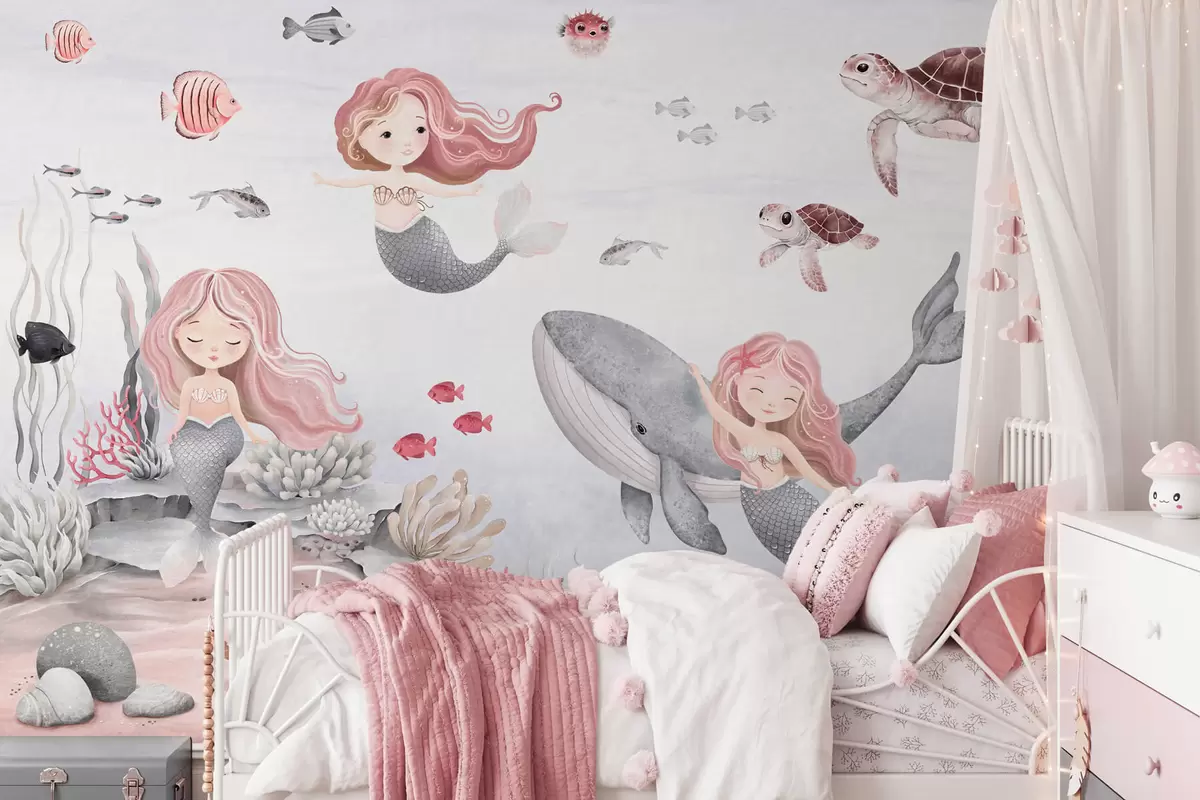 Τοιχογραφίες Υποβρύχιος κόσμος με γοργόνες και ψάρια Nr. w04166v1
