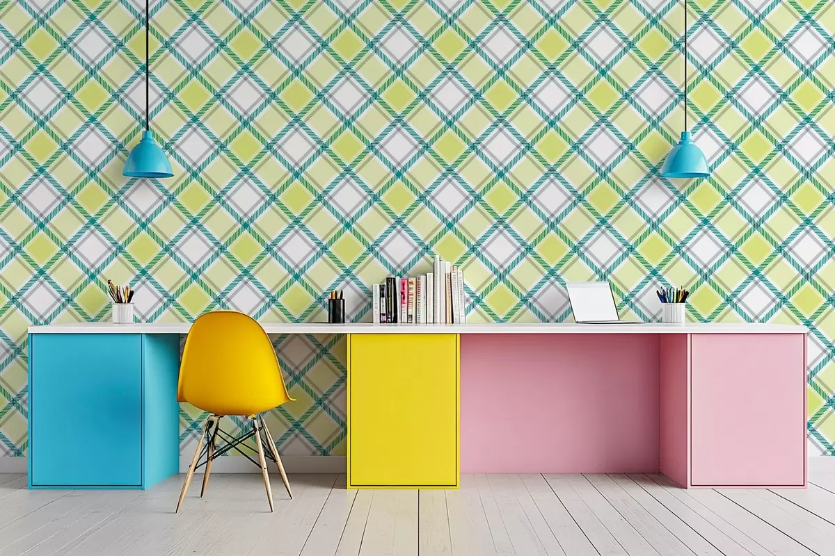 Τοιχογραφίες καρό μοτίβο σε κίτρινους τόνους Nr. w04167v1