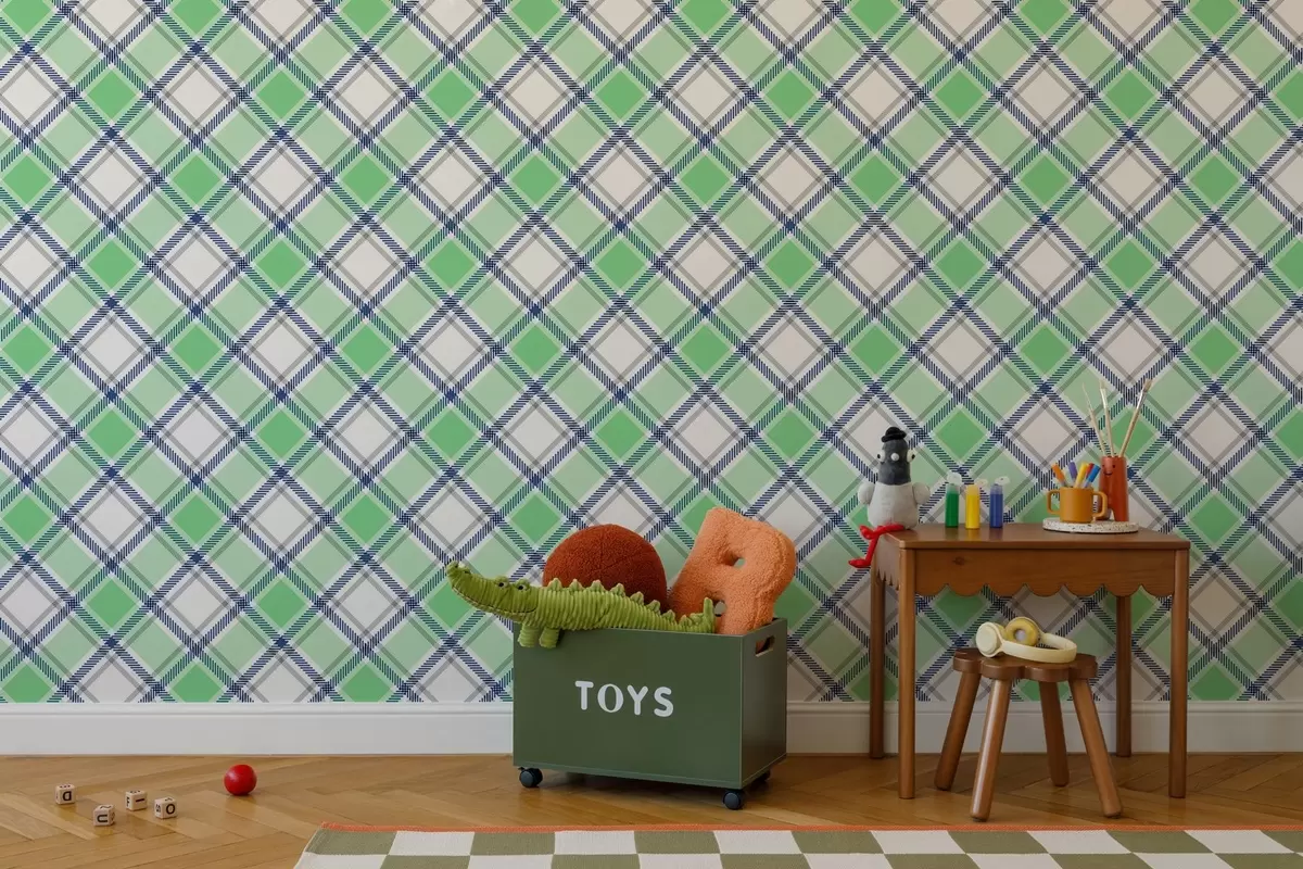 Τοιχογραφίες καρό μοτίβο σε πράσινους τόνους Nr. w04167v2