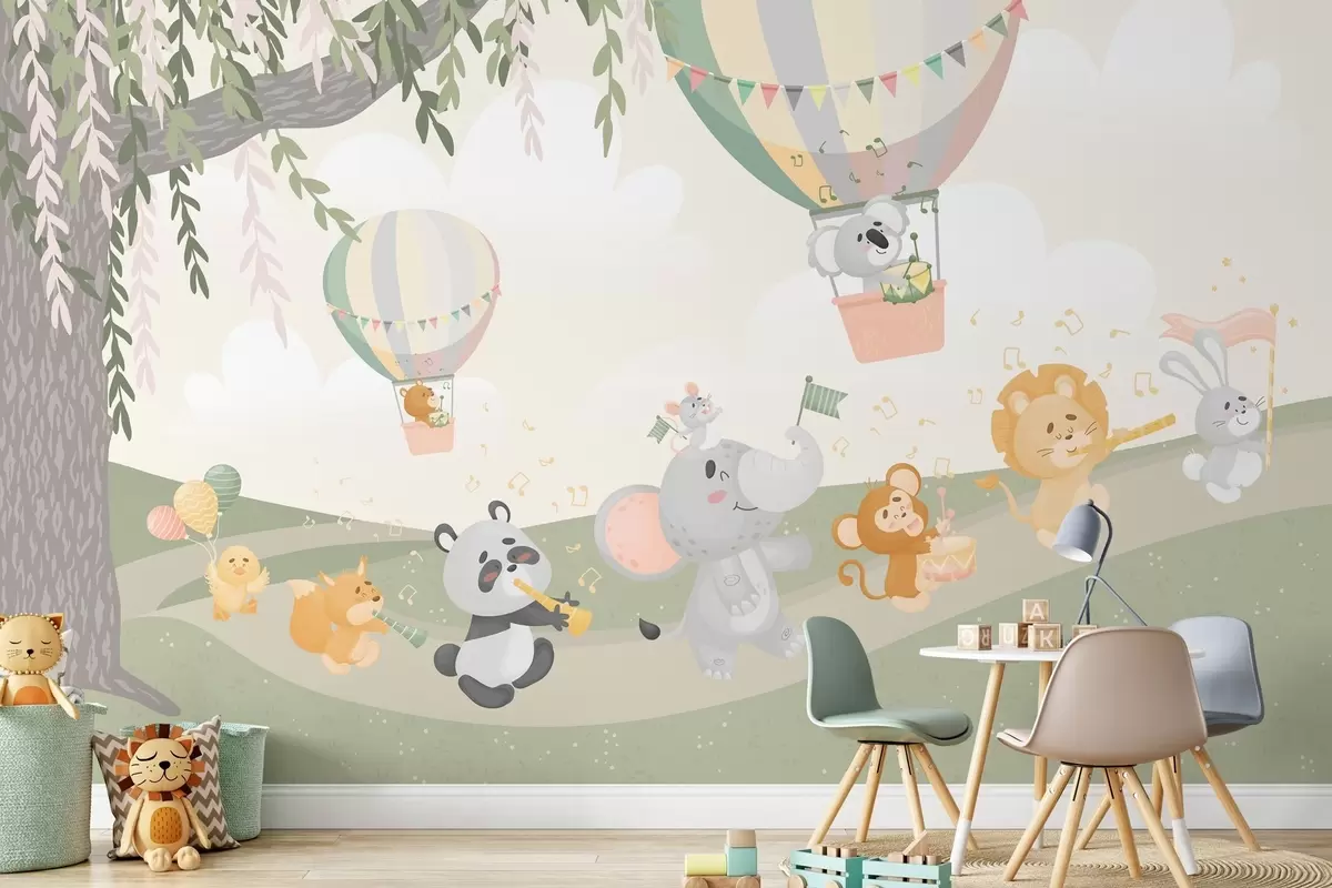 Τοιχογραφίες Τοπίο με ζώα που παίζουν μουσικά όργανα Nr. w04200v1