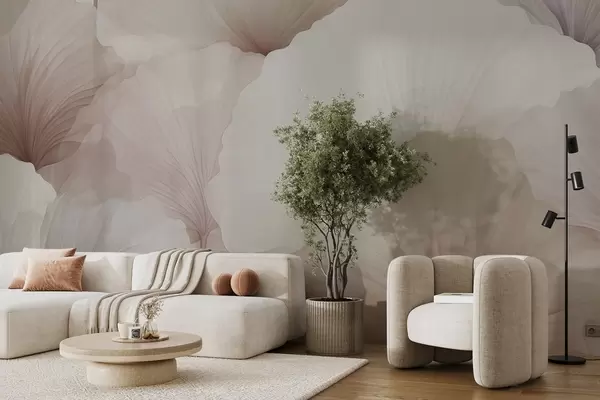 Τοιχογραφίες λουλούδια, πέταλα, κρέμα, γκρι, απαλότητα, ηρεμία Nr. w04256v1