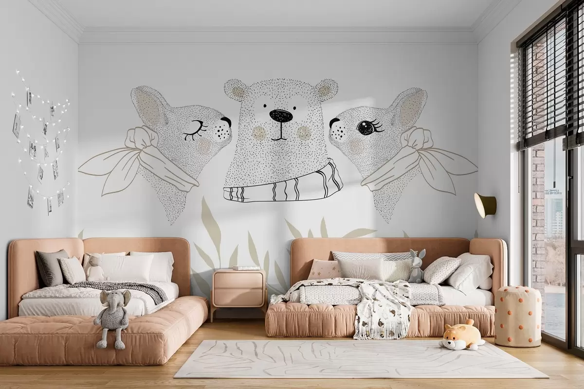 Τοιχογραφίες Αστεία ζώα, λαγοί και ένα αρκουδάκι Nr. w04269v1