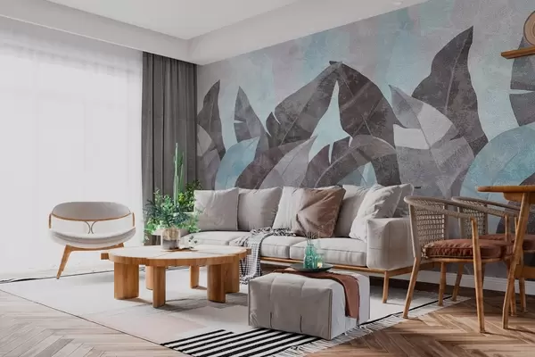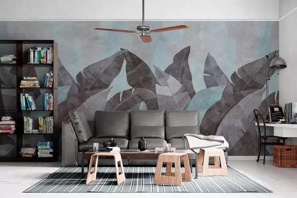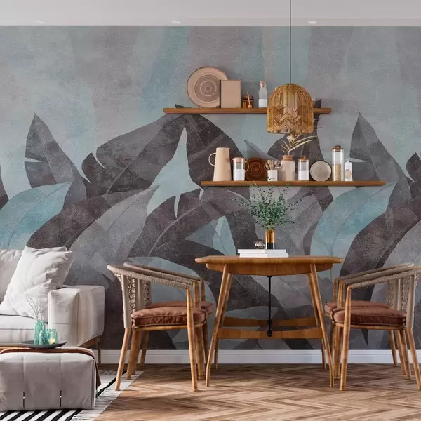 Τοιχογραφίες φύλλα μπανάνας με υφή σε αποχρώσεις του μπλε και του γκρι Nr. w04285v2