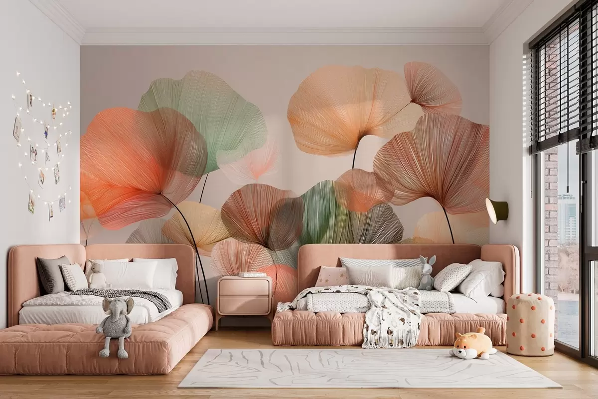 Τοιχογραφίες πολύχρωμα φύλλα ginkgo με φλέβες Nr. w04305