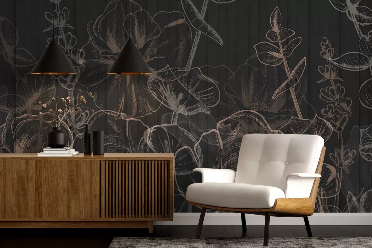 Τοιχογραφίες Σιλουέτες φυτών σε φόντο από σκυρόδεμα Nr. w04327v2
