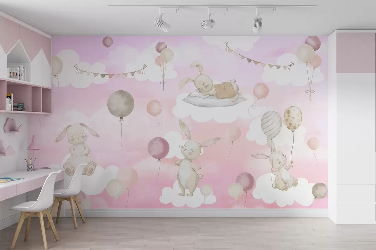 Τοιχογραφίες Κουνέλια με μπαλόνια σε σύννεφα Nr. w04337v1
