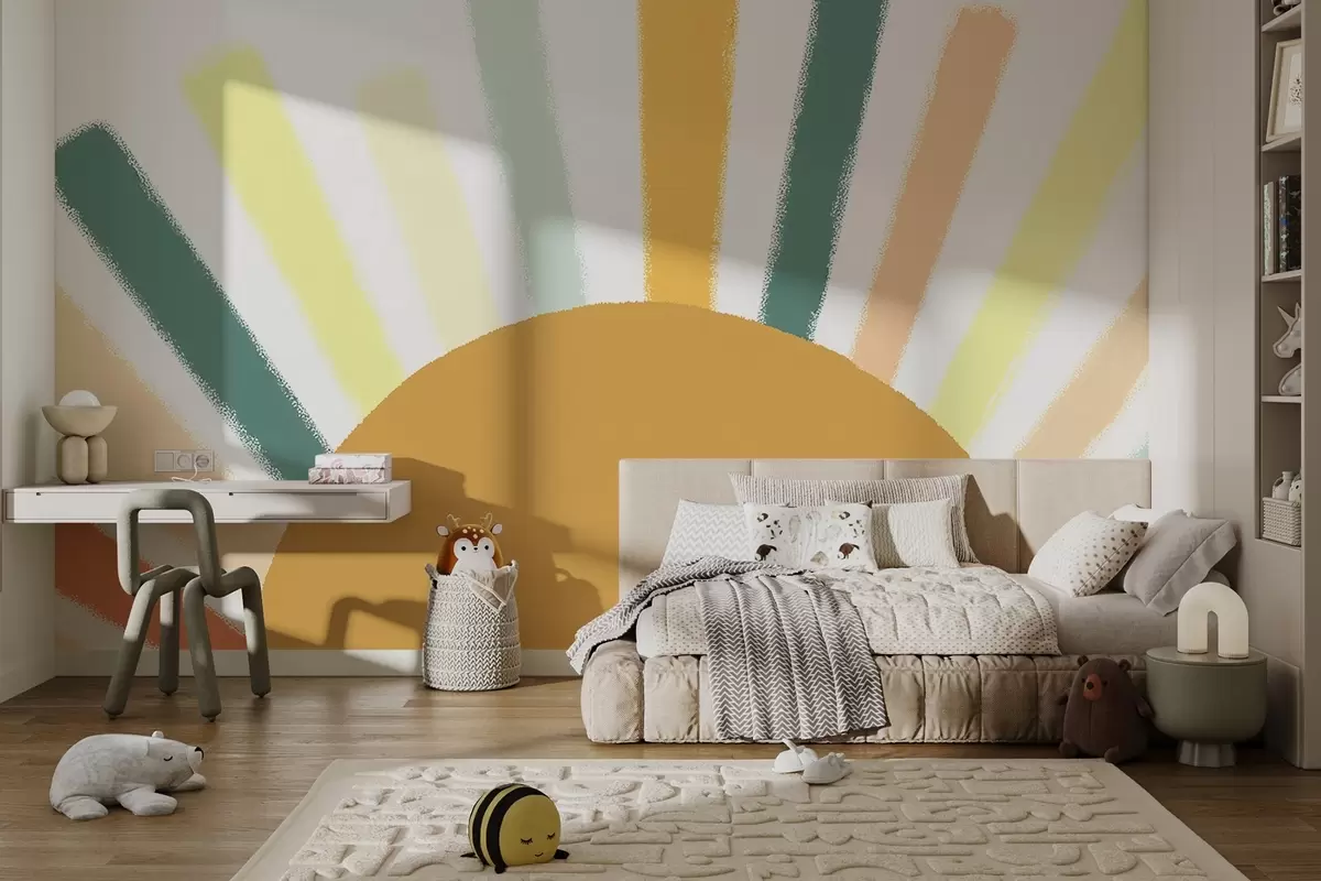 Τοιχογραφίες Αφηρημένος ήλιος με χρωματιστές ακτίνες Nr. w04352