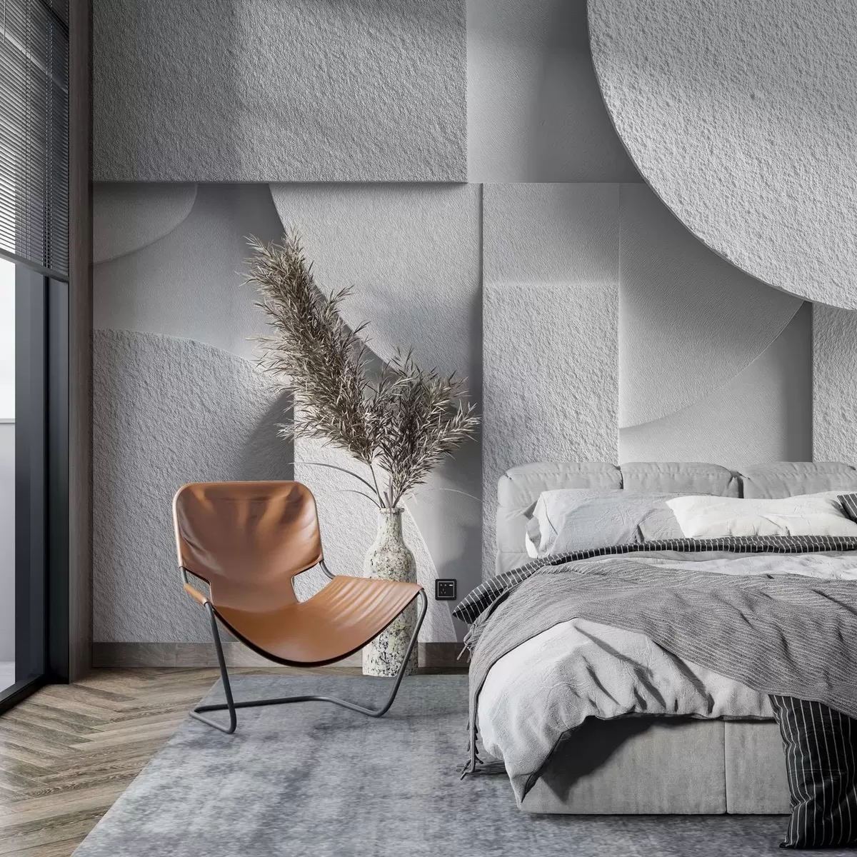 Τοιχογραφίες Αφηρημένη σύνθεση με λευκά τρισδιάστατα γεωμετρικά σχήματα Nr. w04395v1