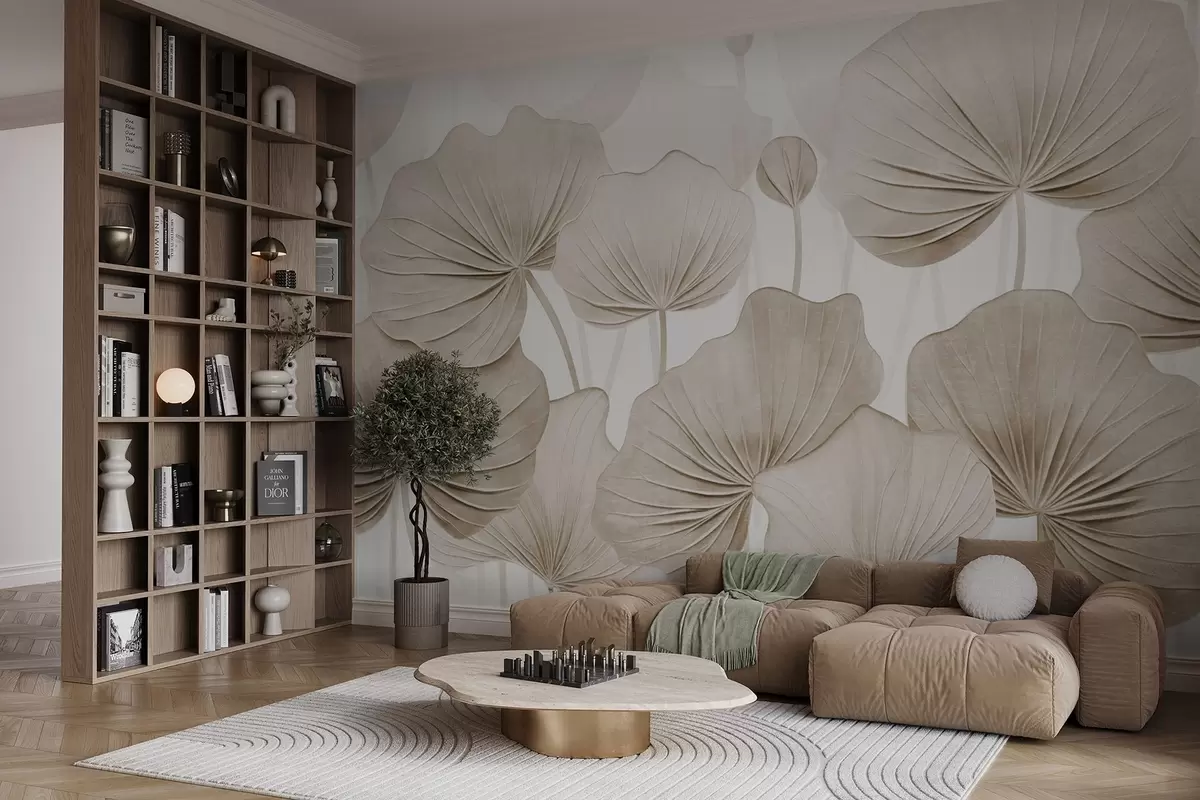 Τοιχογραφίες Φύλλα λωτού με απομίμηση ταλαιπωρημένης υφής Nr. w04412v1