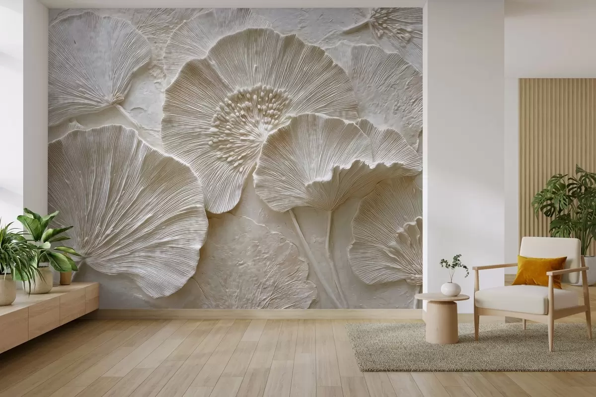 Τοιχογραφίες Ογκώδη φύλλα ginkgo σε ανάγλυφο στυλ Nr. w04444