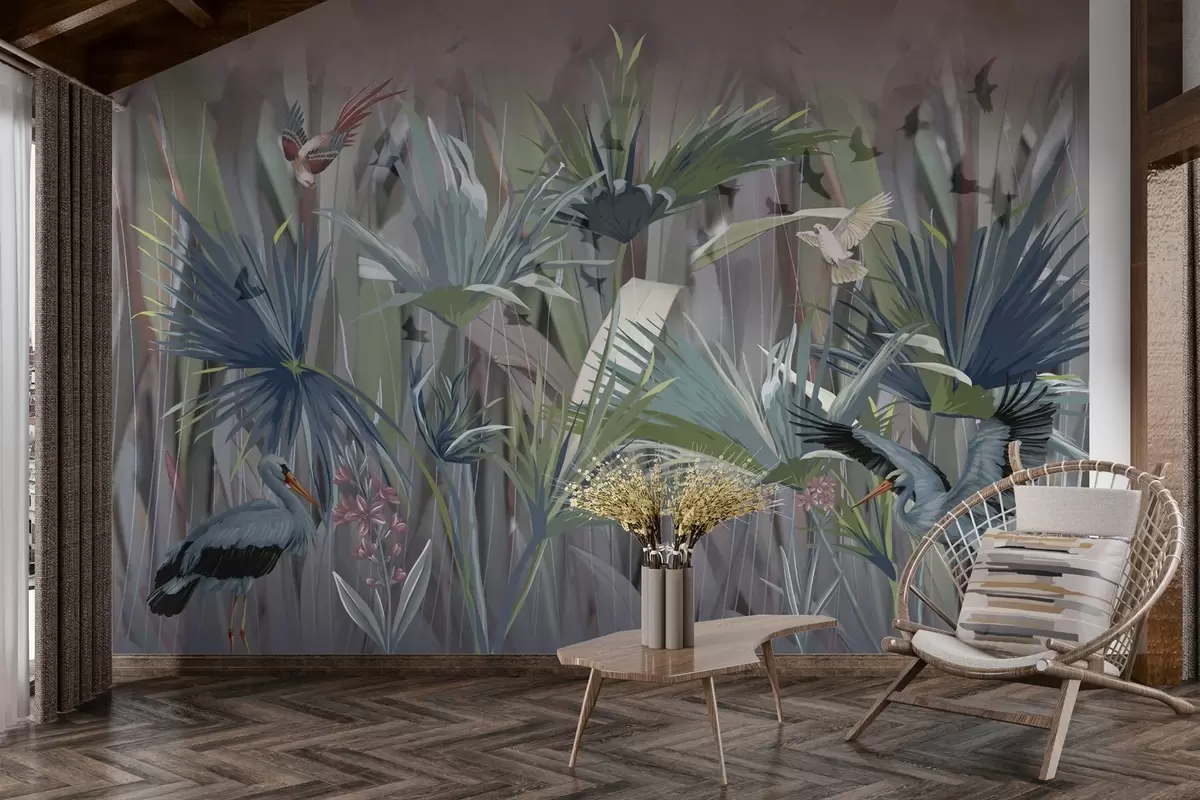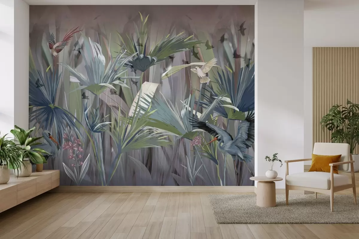 Τοιχογραφίες Εξωτικά πουλιά ανάμεσα σε φύλλα φοίνικα και λουλούδια Nr. w04458