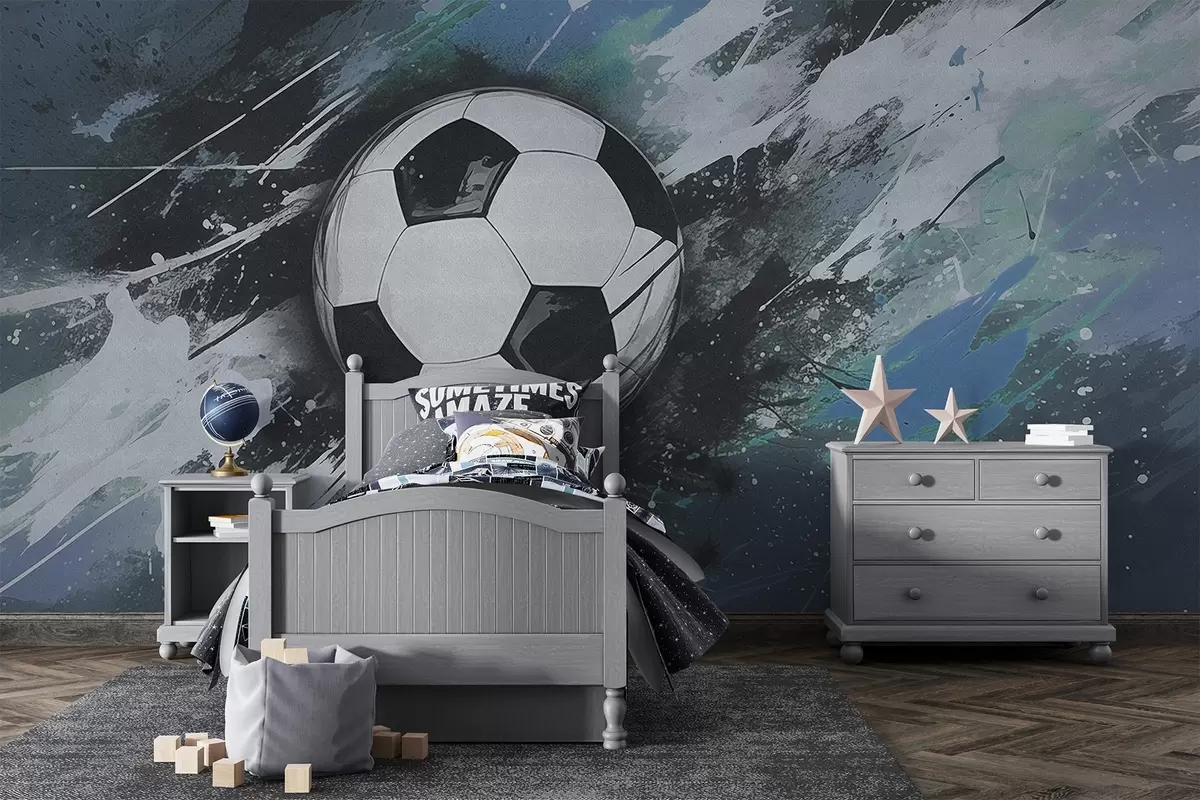 Τοιχογραφίες Μπάλα ποδοσφαίρου με θολό γκράφιτι στο φόντο Nr. w04467v1