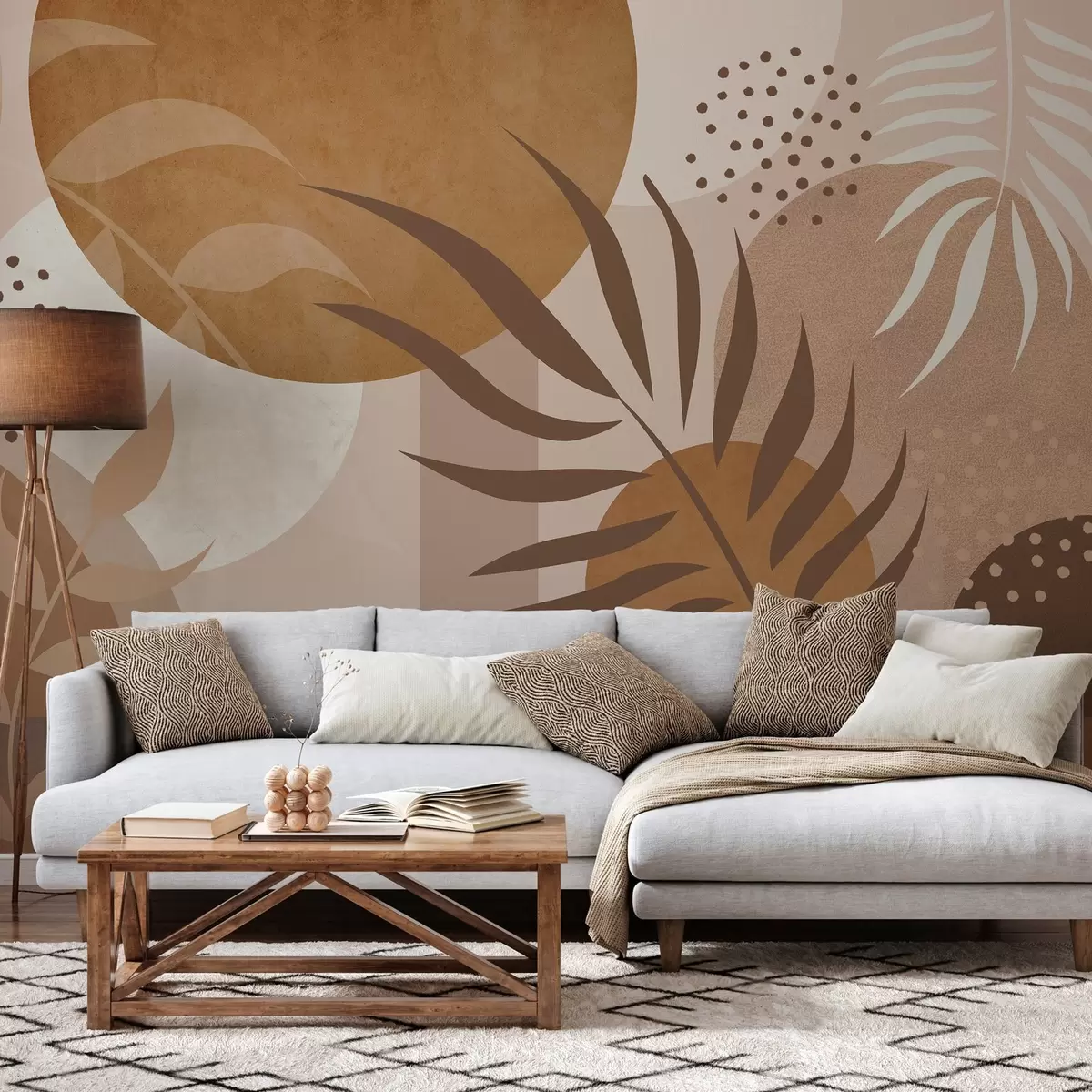 Τοιχογραφίες Σύγχρονη αφαίρεση με φυτά σε καφέ και μπεζ τόνους Nr. w04497