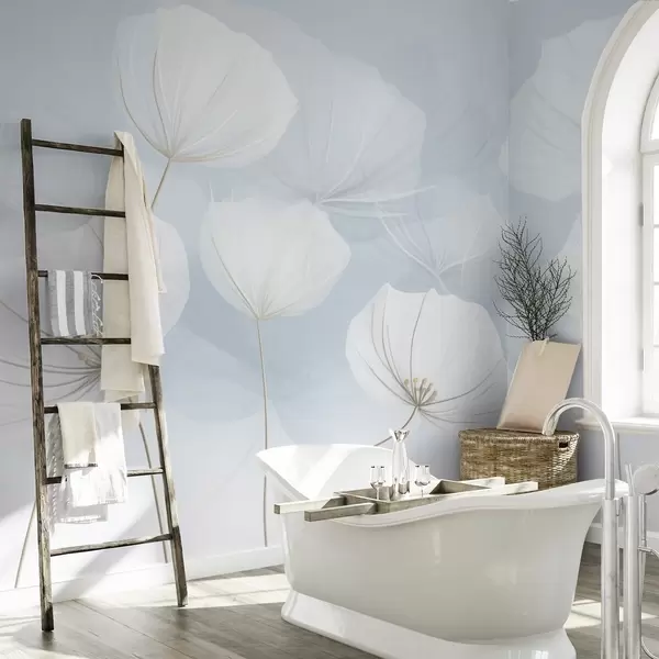 Τοιχογραφίες Αέρινα λευκά λουλούδια σε μπλε φόντο Nr. w04580