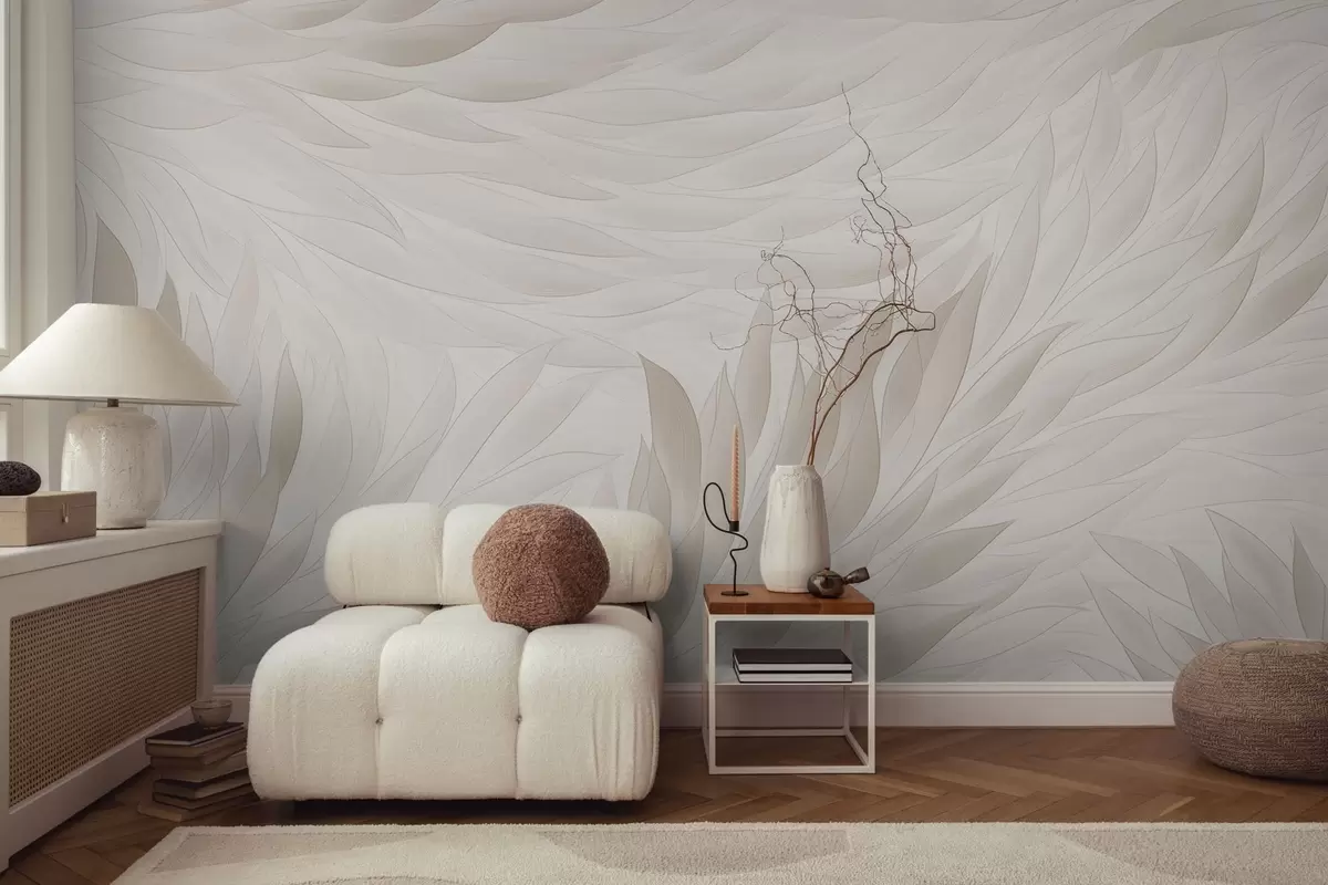 Τοιχογραφίες Κυματιστά φύλλα σε απαλές αποχρώσεις του κρεμ Nr. w04610