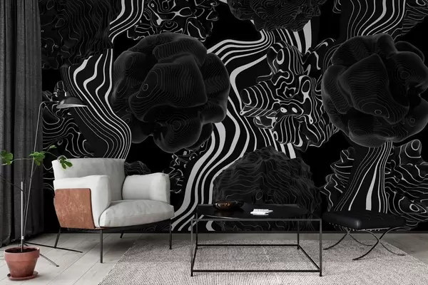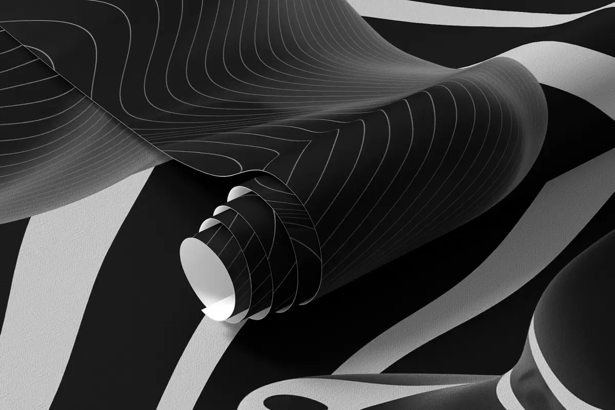 Τοιχογραφίες αφηρημένα οργανικά σχήματα σε 3D στυλ σε μαύρους τόνους με λευκές ρίγες Nr. w04628