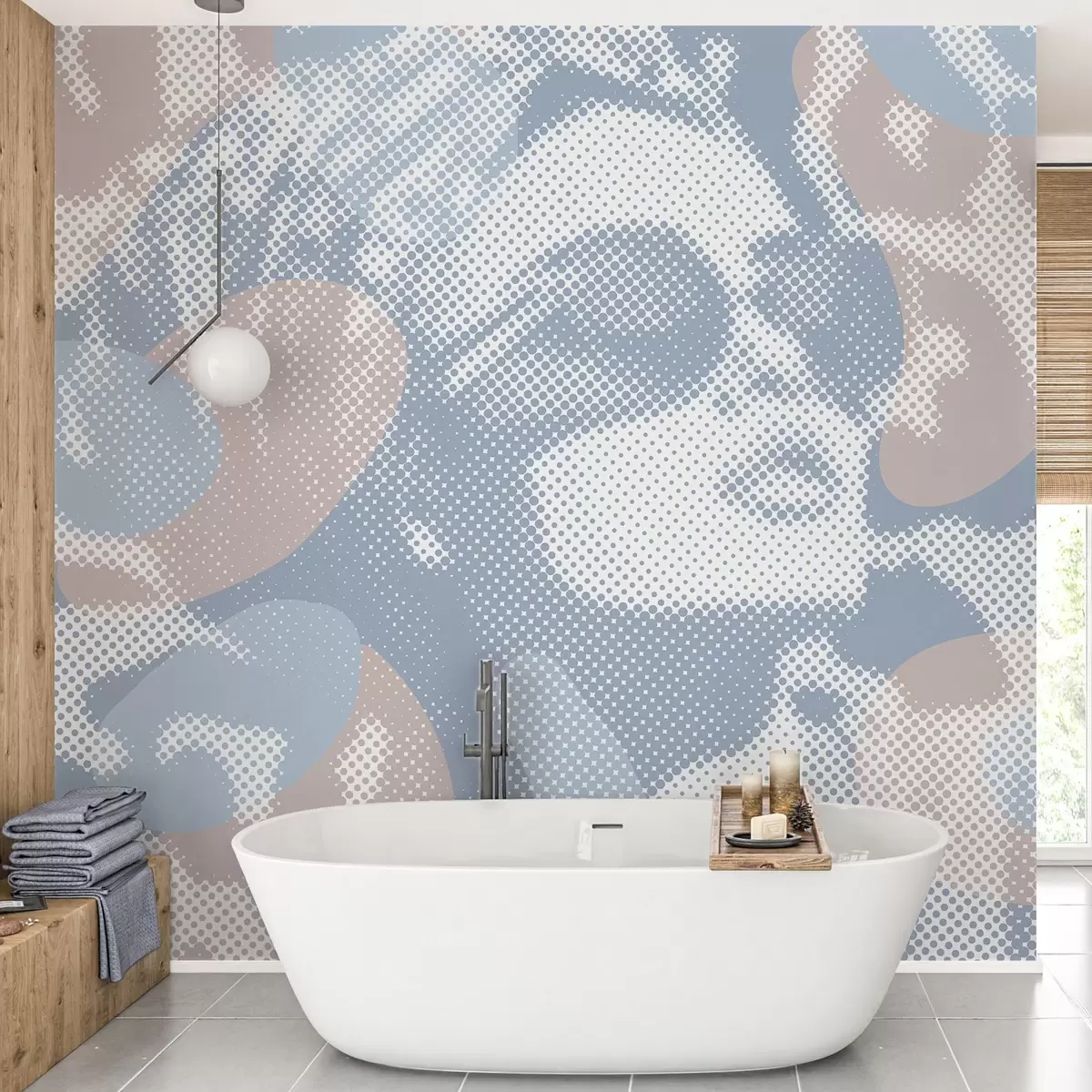 Τοιχογραφίες πορτρέτο γυναίκας σε φόντο λεοπάρδαλης σε στυλ με κουκκίδες σε μπλε αποχρώσεις Nr. w04630v1