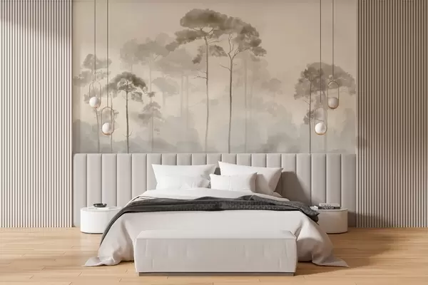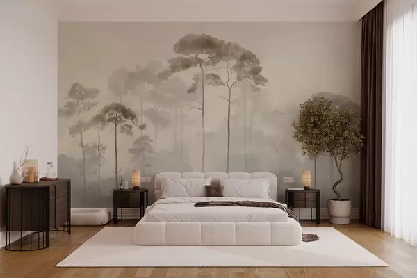 Τοιχογραφίες ελαφριές σιλουέτες πεύκων σε στυλ ακουαρέλας Nr. w04634