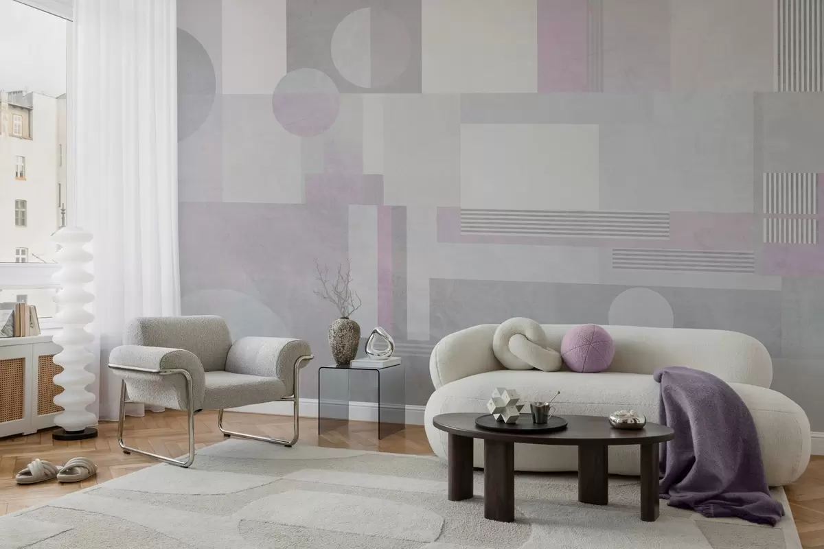 Τοιχογραφίες αφηρημένη γεωμετρία σε αποχρώσεις του γκρι και της λεβάντας Nr. w04635v1