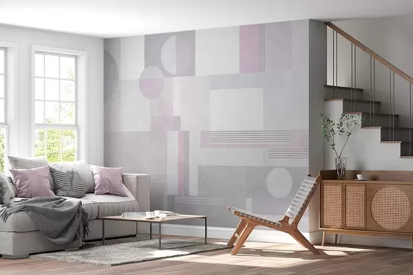 Τοιχογραφίες αφηρημένη γεωμετρία σε αποχρώσεις του γκρι και της λεβάντας Nr. w04635v1