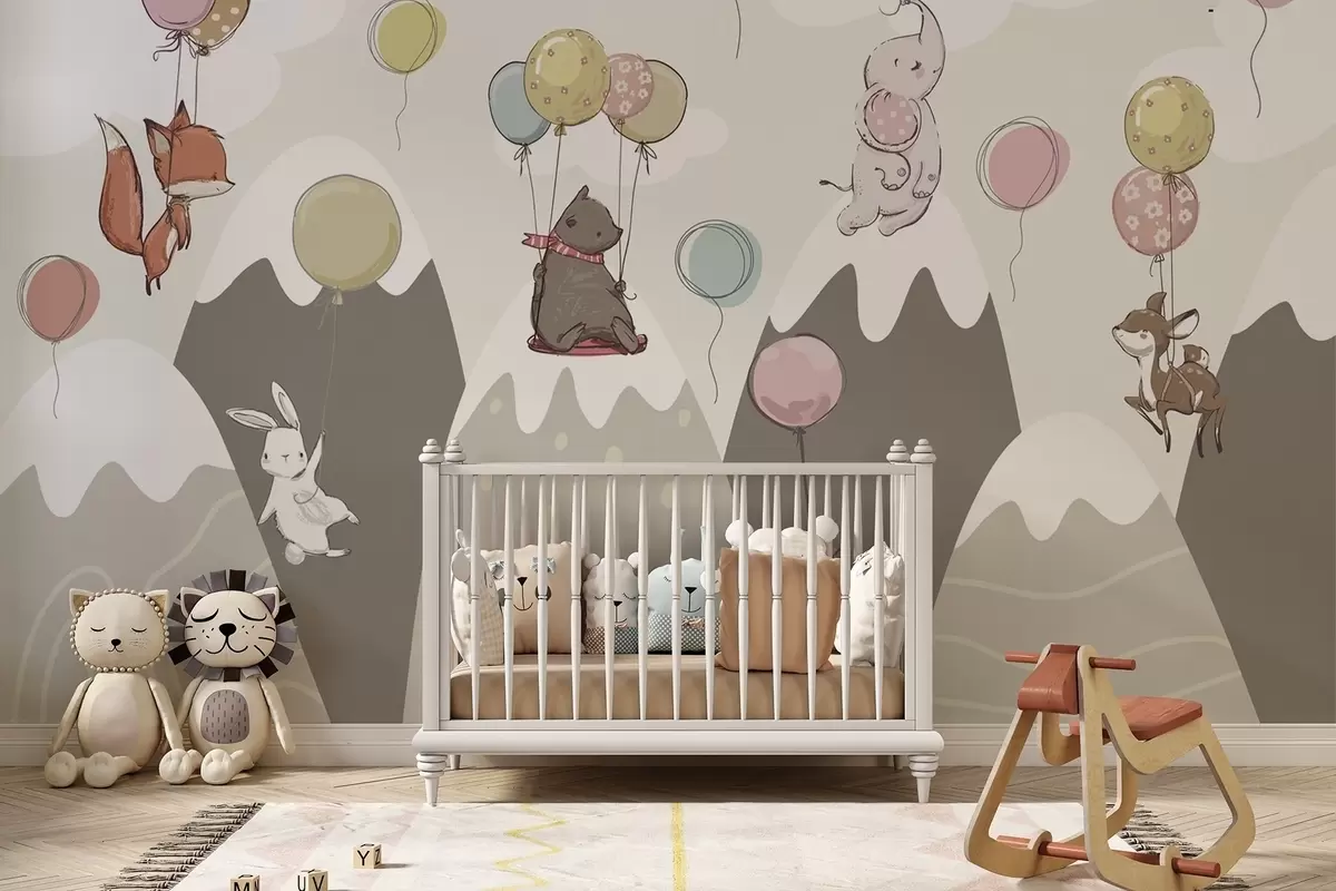 Τοιχογραφίες Παιδικά σκανδιναβικά βουνά με ζώα Nr. w04651