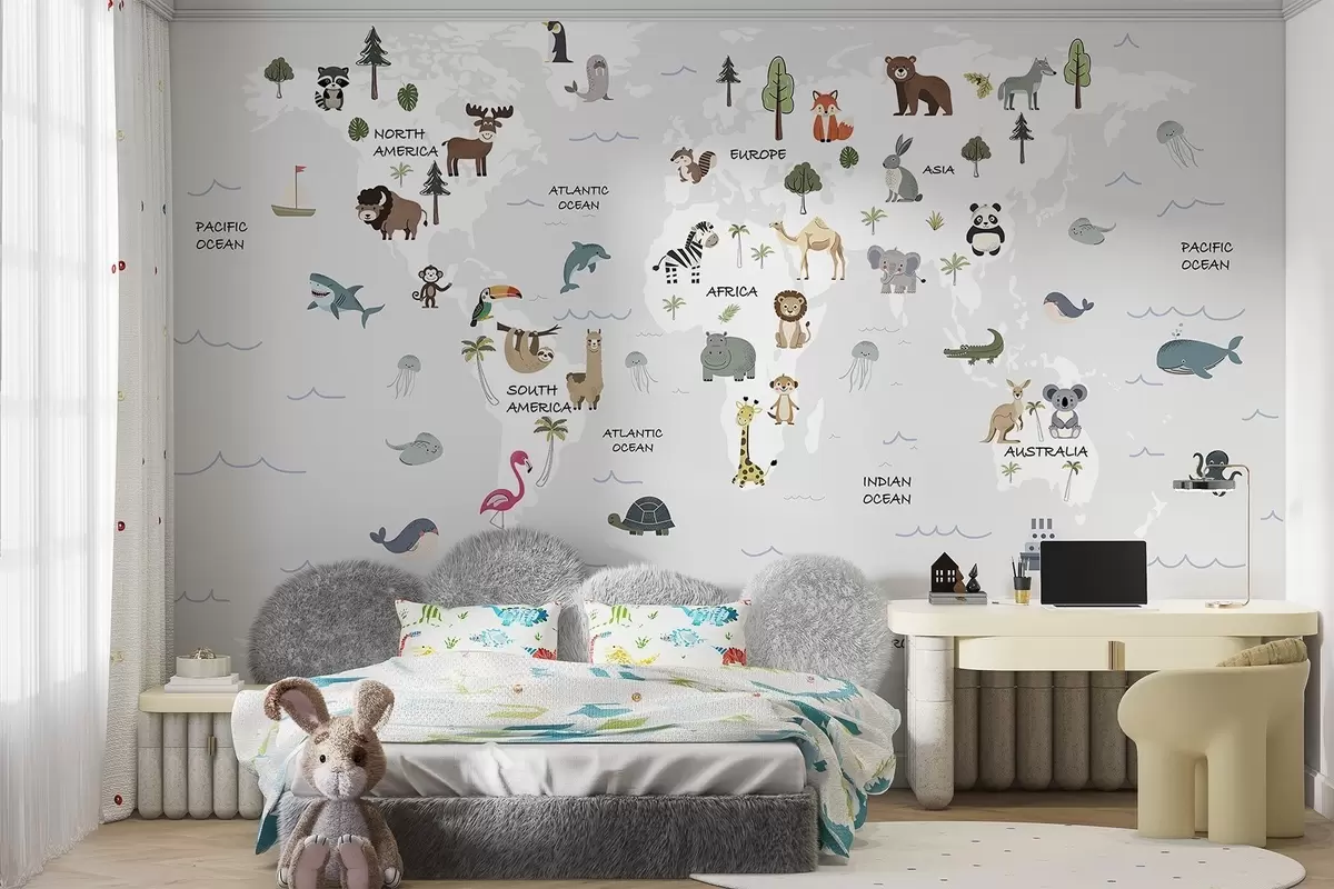 Τοιχογραφίες Παγκόσμιος χάρτης με ζώα Nr. w04663