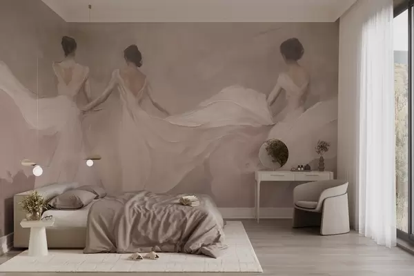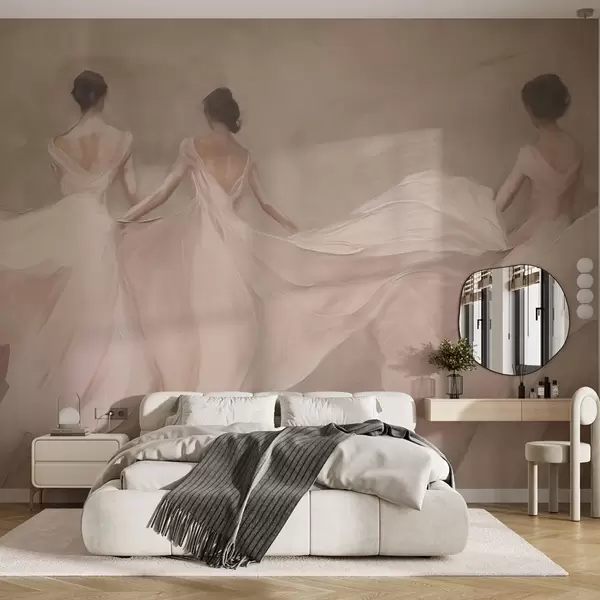 Τοιχογραφίες Τρεις γυναίκες με ροζ φορέματα, ρέον ύφασμα, απαλότητα Nr. w04709