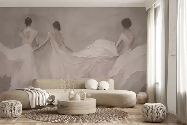 Τοιχογραφίες Τρεις γυναίκες με ροζ φορέματα, ρέον ύφασμα, απαλότητα Nr. w04709