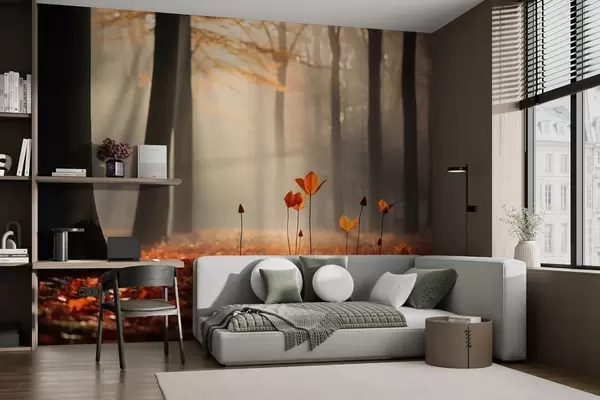 Τοιχογραφίες Φθινοπωρινό δάσος με ηλιαχτίδες και φωτεινό φύλλωμα Nr. w04710