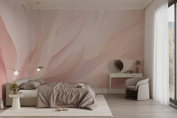Τοιχογραφίες Αφηρημένες απαλές πινελιές σε παστέλ ροζ και ροδακινί αποχρώσεις Nr. w04731
