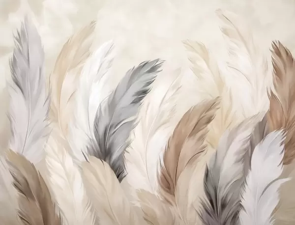 Τοιχογραφίες Απαλά, αφράτα φτερά σε ζεστή ουδέτερη παλέτα Nr. w04736