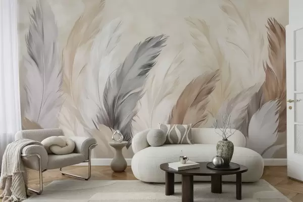 Τοιχογραφίες Απαλά, αφράτα φτερά σε ζεστή ουδέτερη παλέτα Nr. w04736