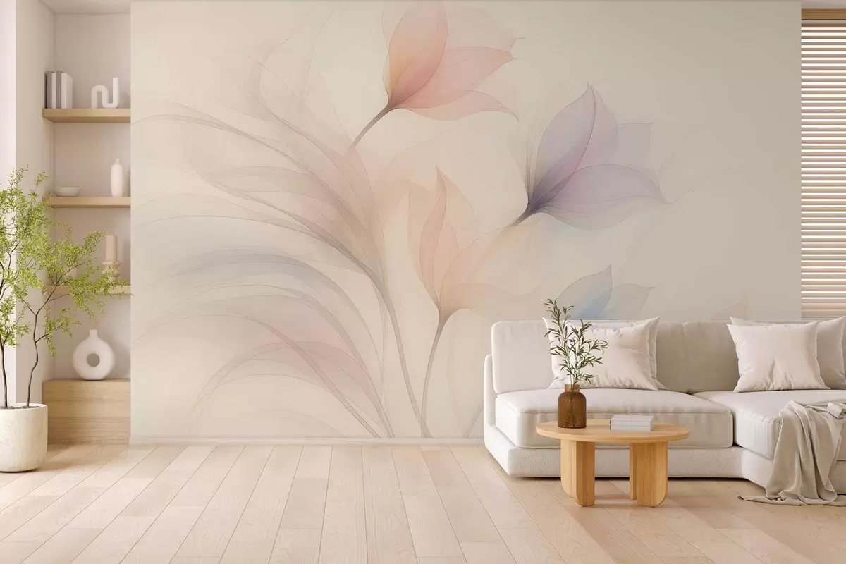 Τοιχογραφίες λεπτές ημιδιαφανείς τουλίπες σε μπεζ φόντο Nr. w04754