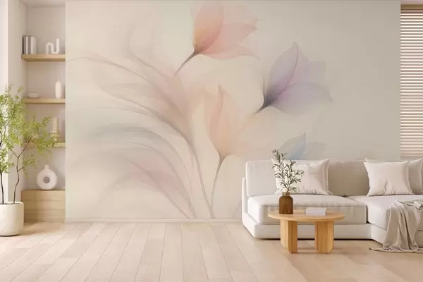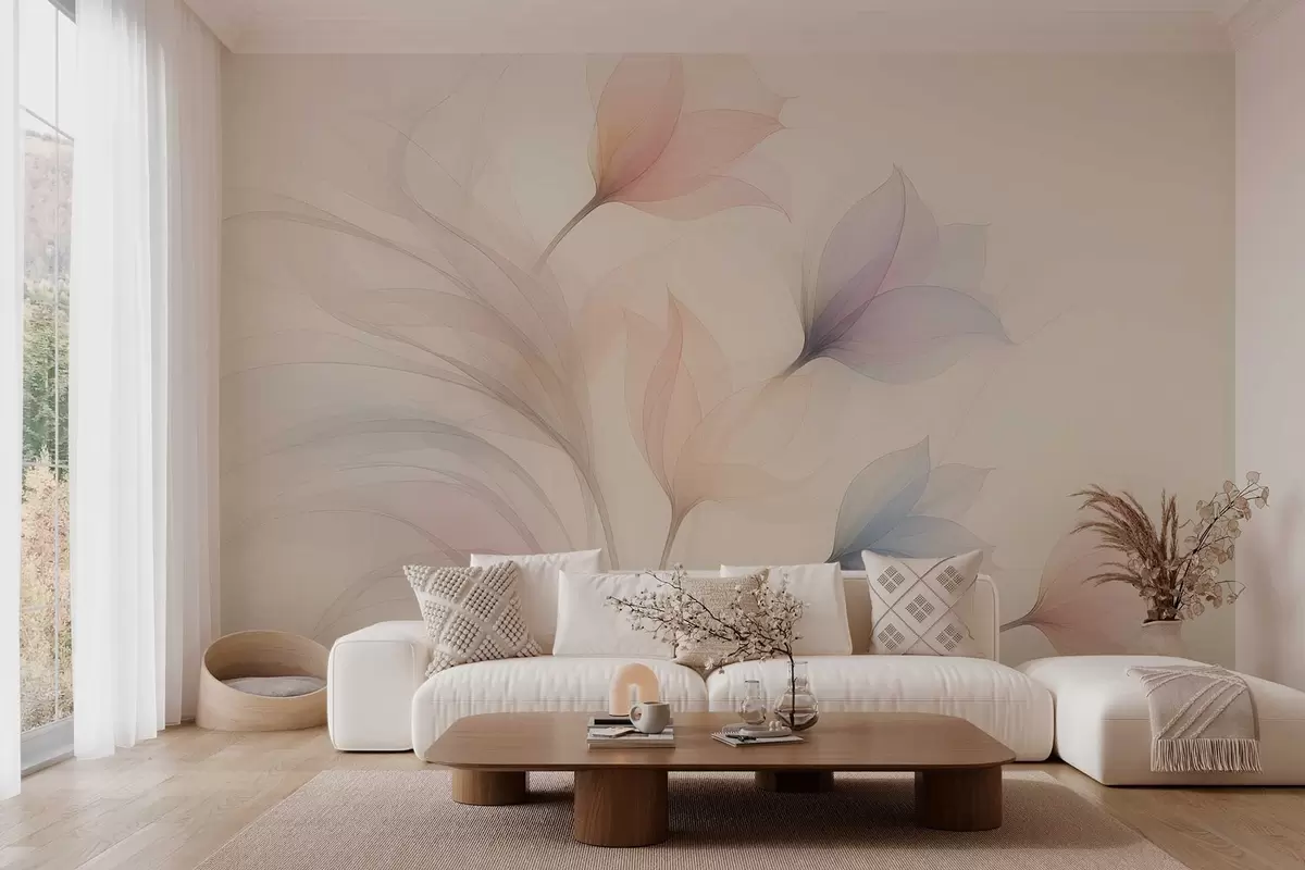 Τοιχογραφίες λεπτές ημιδιαφανείς τουλίπες σε μπεζ φόντο Nr. w04754